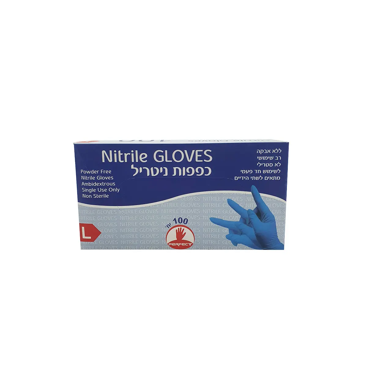 חבילת כפפות ניטריל ללא אבקה בצבע כחול.